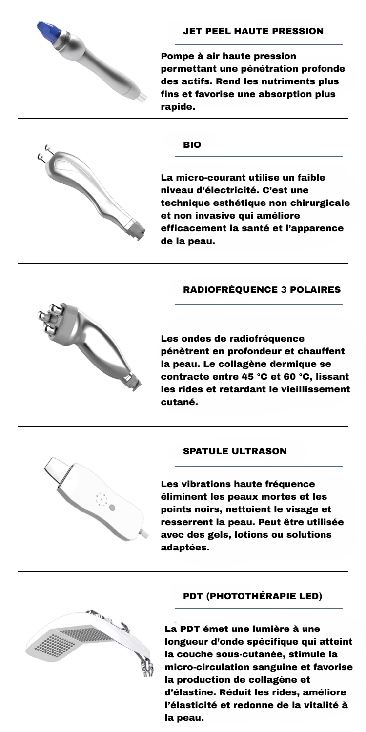 Ce 9 en 1 coche toutes les cases. Les clientes adorent la sensation du jet d’absorption et l’effet tenseur de la radiofréquence. Je le propose en soin signature, et c’est celui qui cartonne le plus en ce moment.